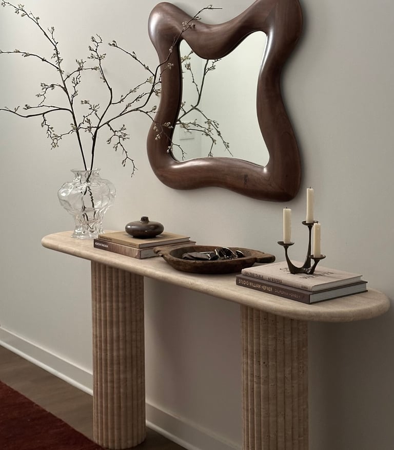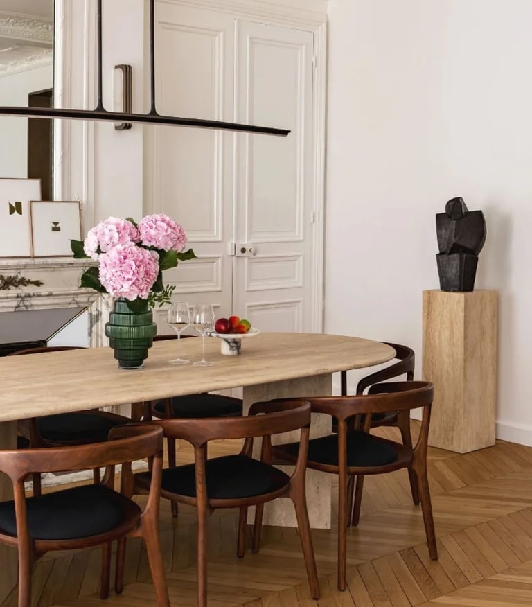 Chez Maison Mramer, nous proposons une large gamme de mobilier en travertin et en marbre : tables à manger, tables basses en travertin et en marbre, tables d’appoint, vasques et petite décoration. Nous sélectionnons avec soin la meilleure qualité de pierre naturelle afin de faire de votre intérieur un véritable havre de paix, alliant élégance et authenticité.